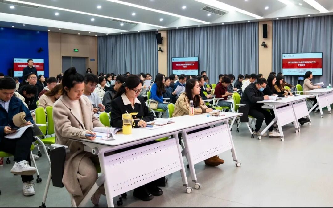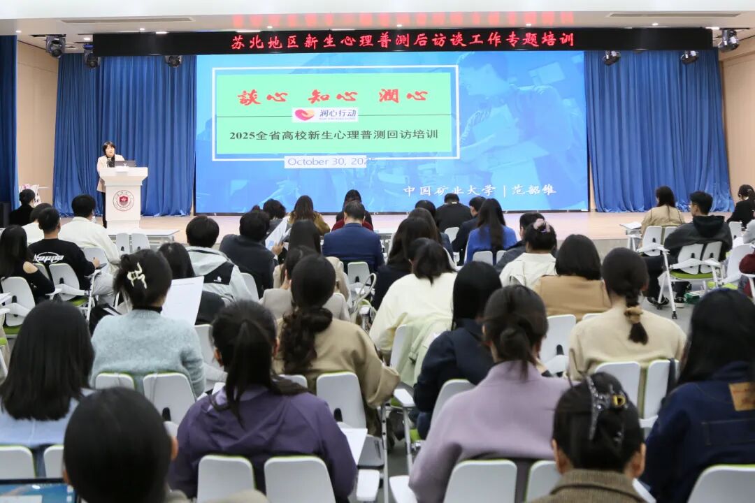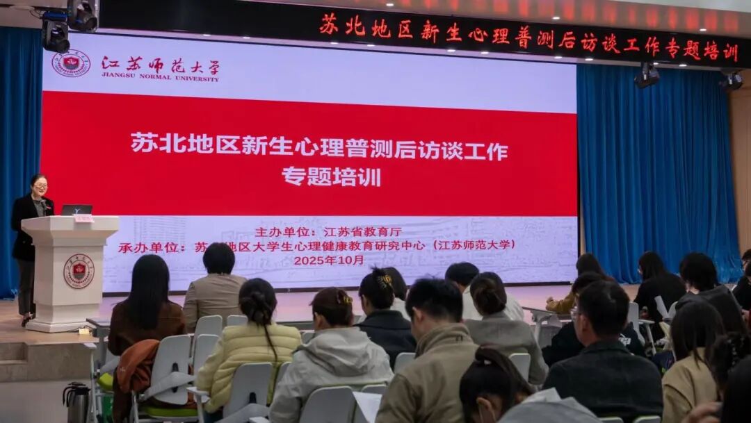 为切实提高苏北地区各高校新生心理普测后访谈工作的针对性和有效性,深化心理健康家校协同育人效能,10月30日,由江苏省教育厅主办、苏北地区大学生心理健康教育研究中心(江苏师范大学)承办的苏北地区高校心理健康教育专题培训在我校举办。培训采用“线上+线下”联动模式开展,区域内各高校心理健康教育工作负责人、专兼职心理健康教育教师、辅导员及班主任共1500余人参训。